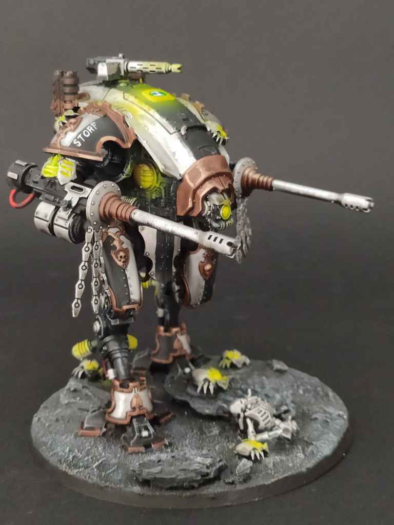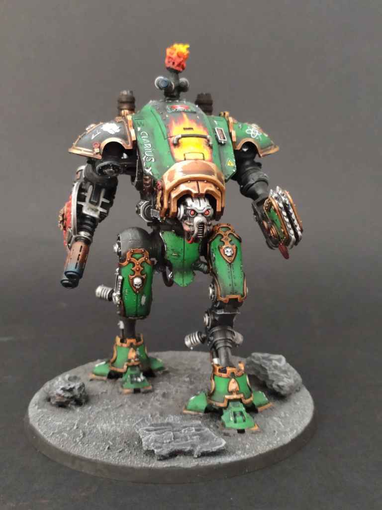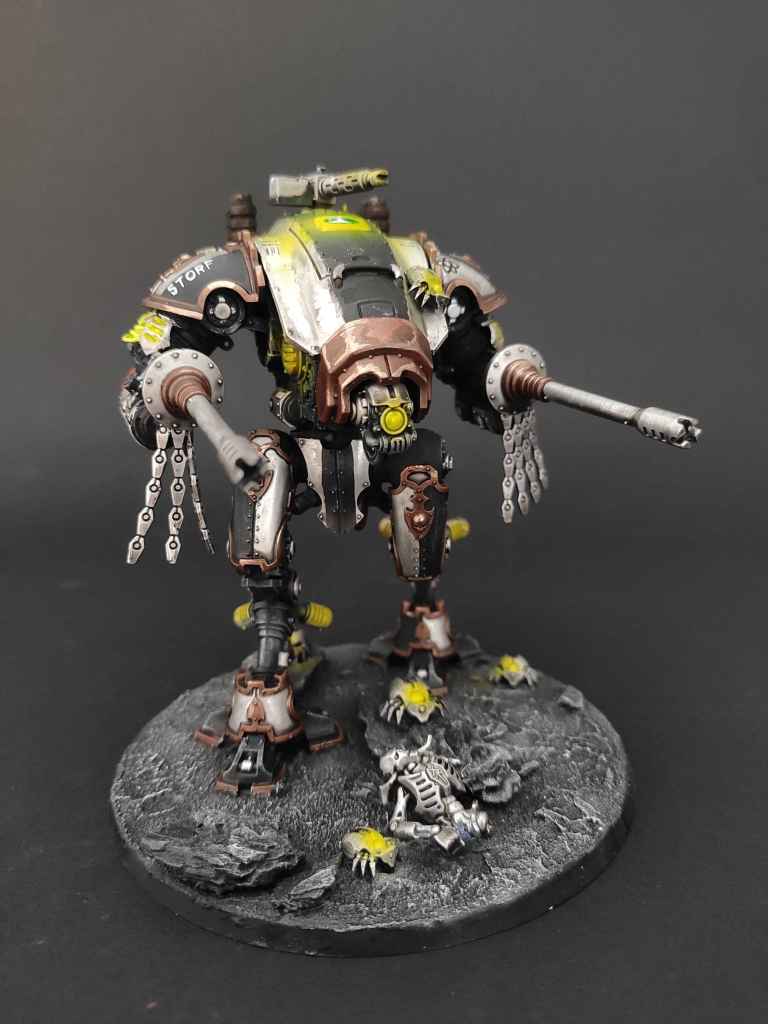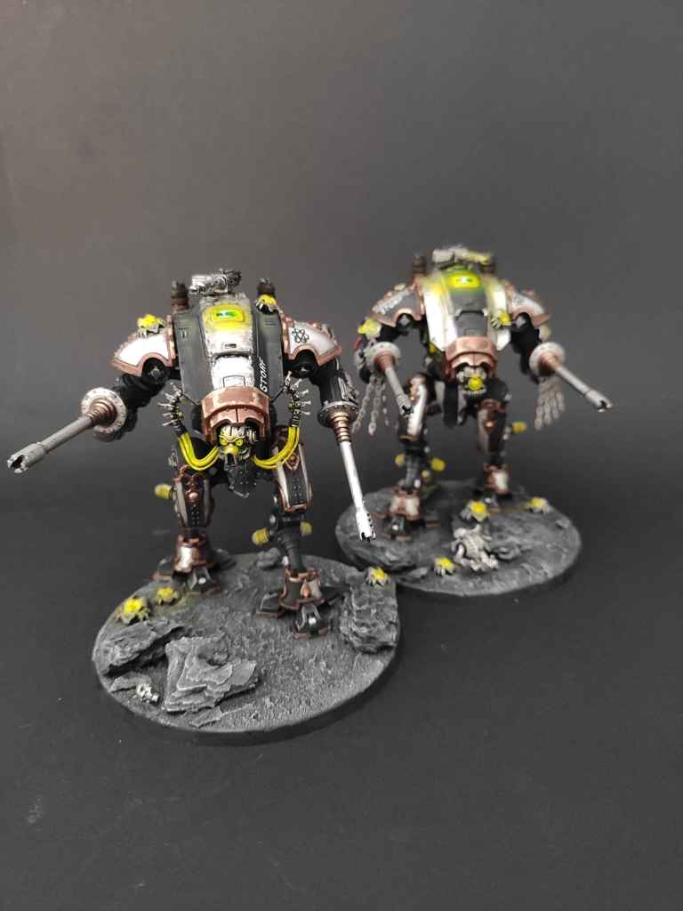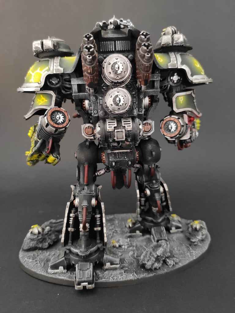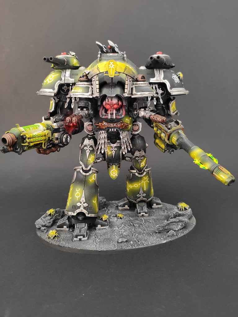 Mon client a choisi de faire peindre ces Imperial Knights aux couleurs des Nécrons, des Space Marines Salamanders, des Orks et des Thousand Sons ^^