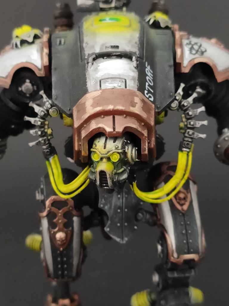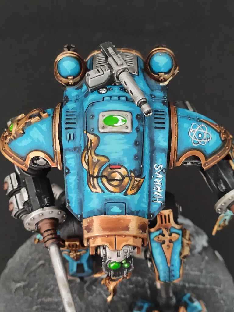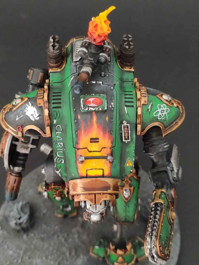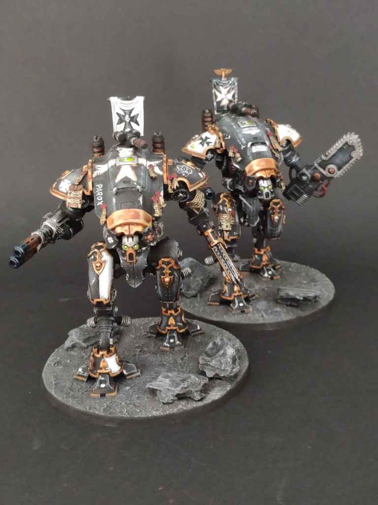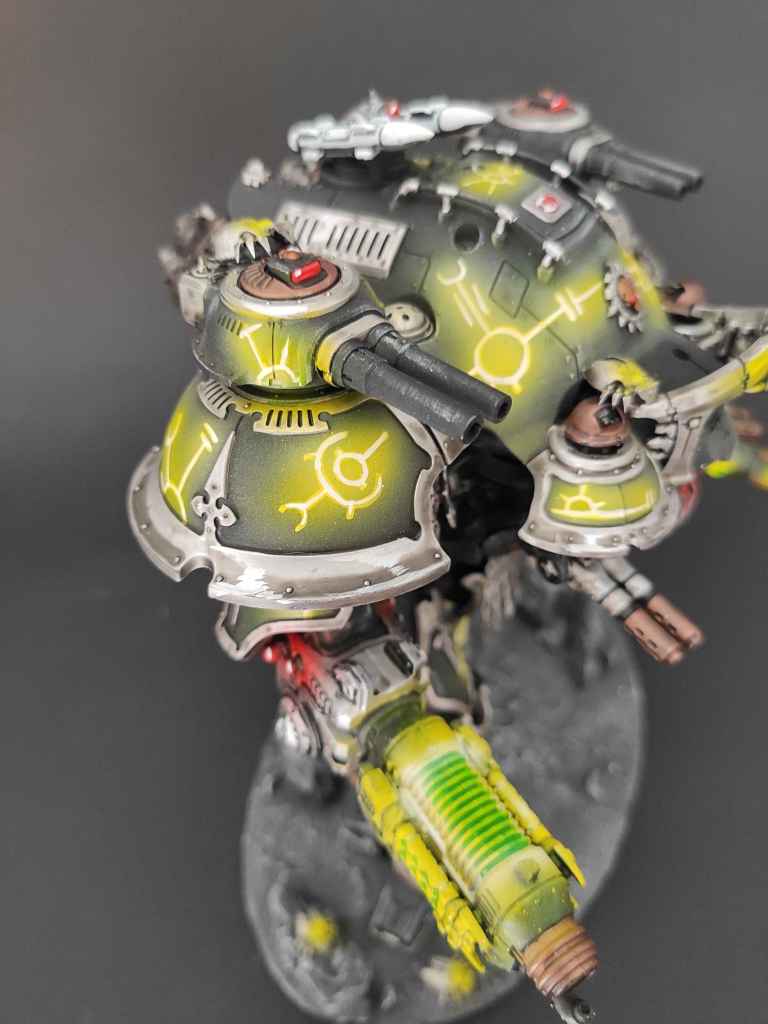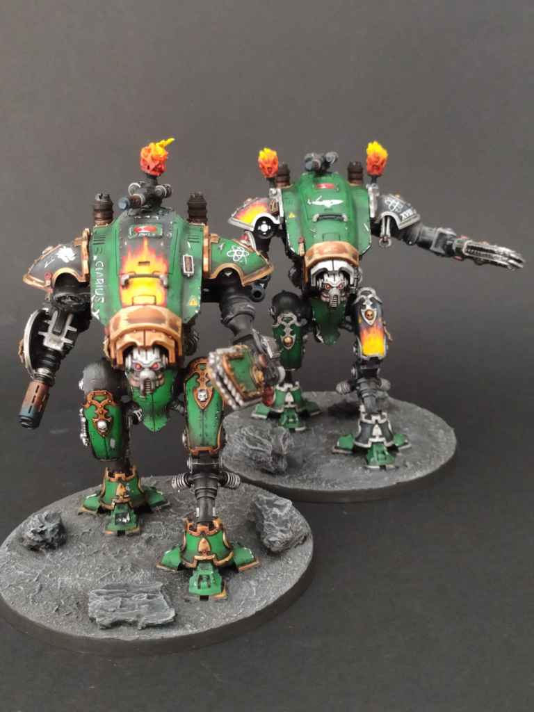 Mon client a choisi de faire peindre ces Imperial Knights aux couleurs des Nécrons, des Space Marines Salamanders, des Orks et des Thousand Sons ^^