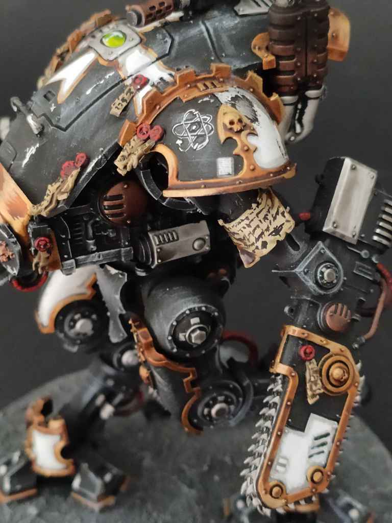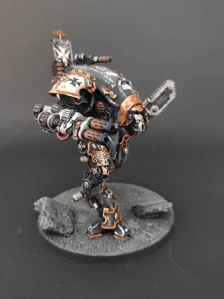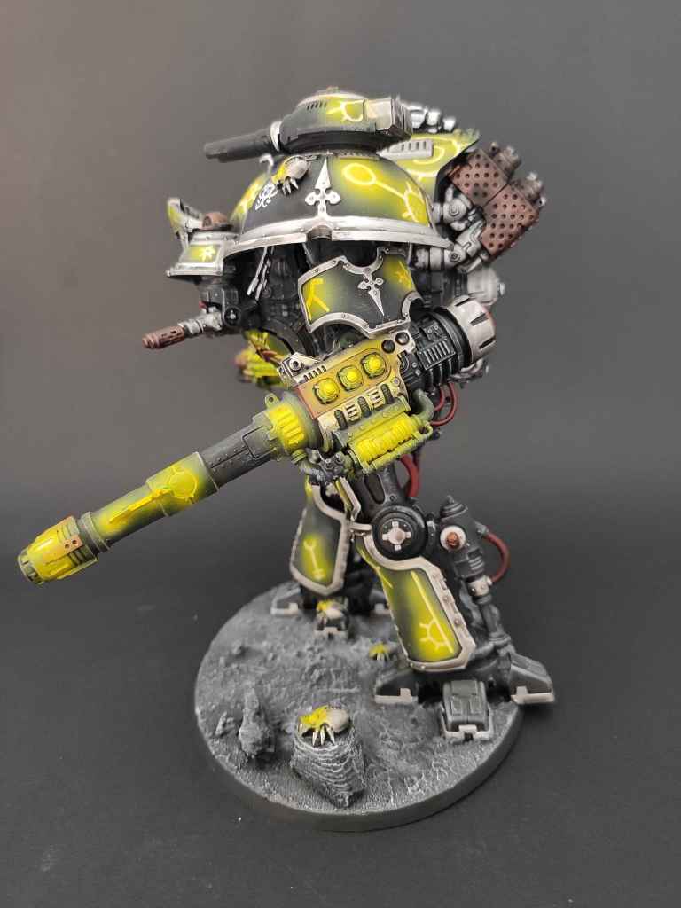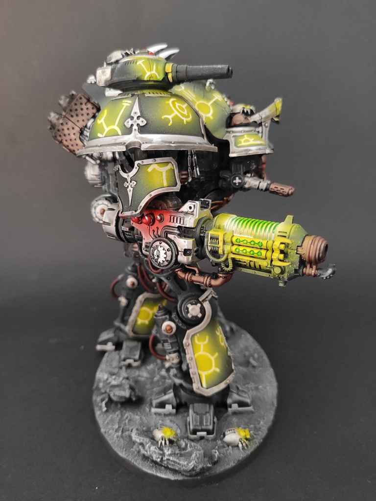 Le but n’étant pas de faire un Imperial Knight corrompu par la faction en question, ni d’en faire un « tueur » de ladite faction. L’idée était « juste » d’avoir une forte inspiration artistique ^^