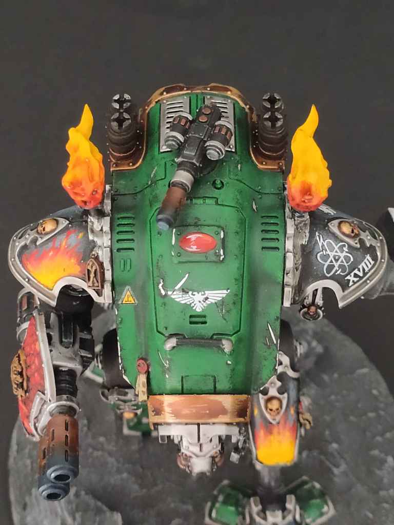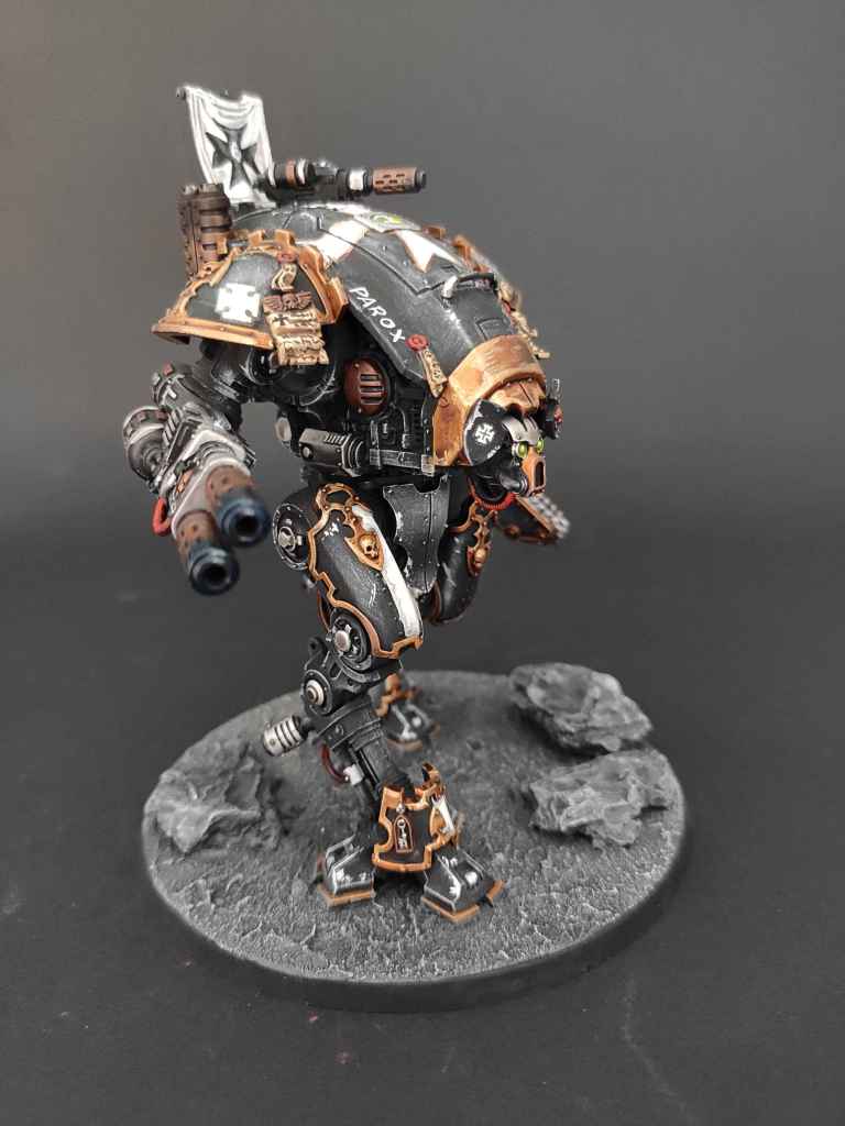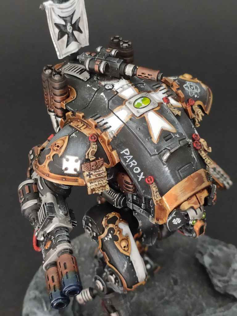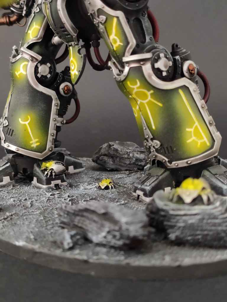 Le but n’étant pas de faire un Imperial Knight corrompu par la faction en question, ni d’en faire un « tueur » de ladite faction. L’idée était « juste » d’avoir une forte inspiration artistique ^^