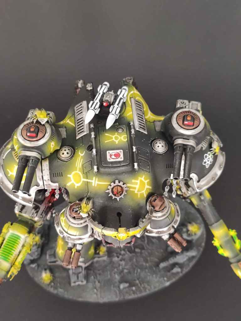 En terme de couleurs, j’ai réhaussé le tout en usant de glyphes et effets de lumière verte fluo, également caractéristique des nécrons.
