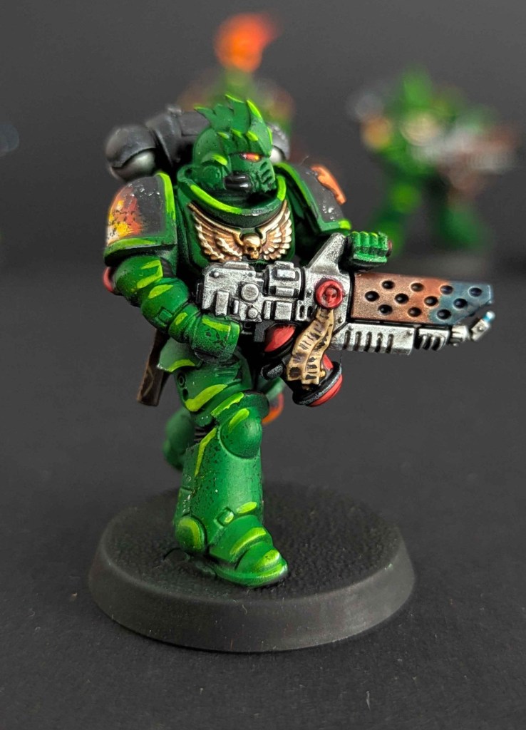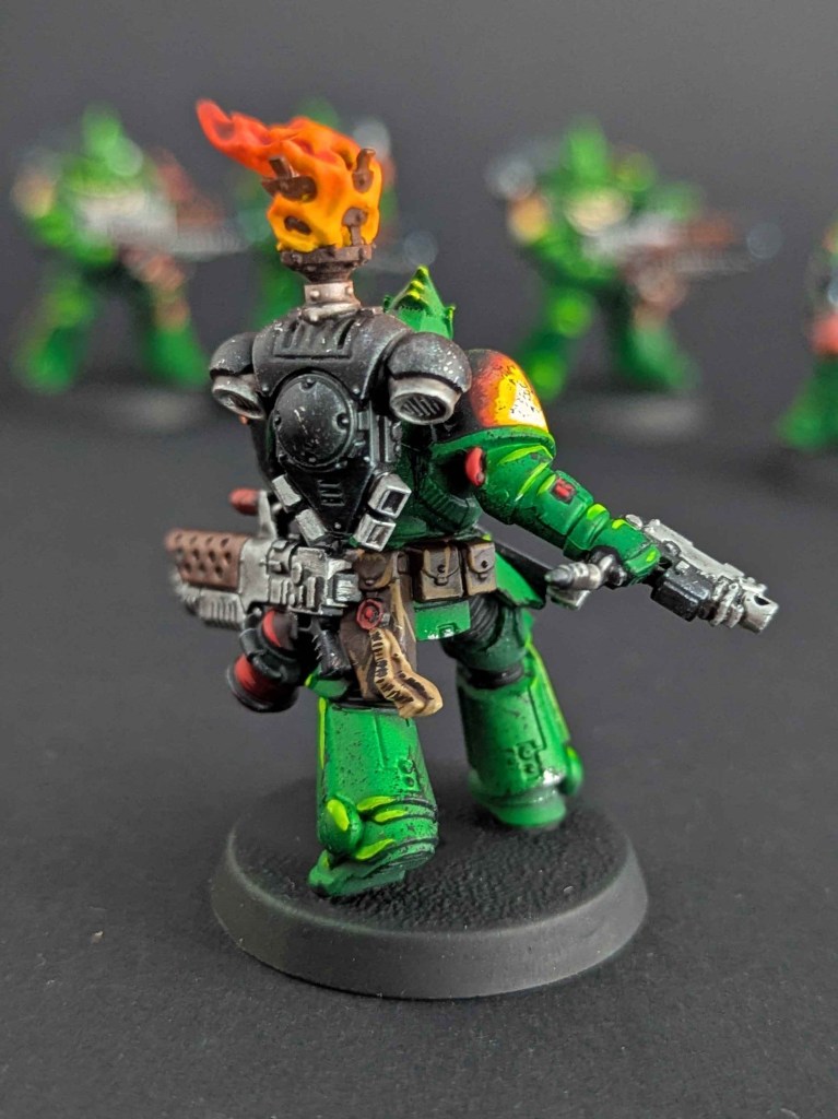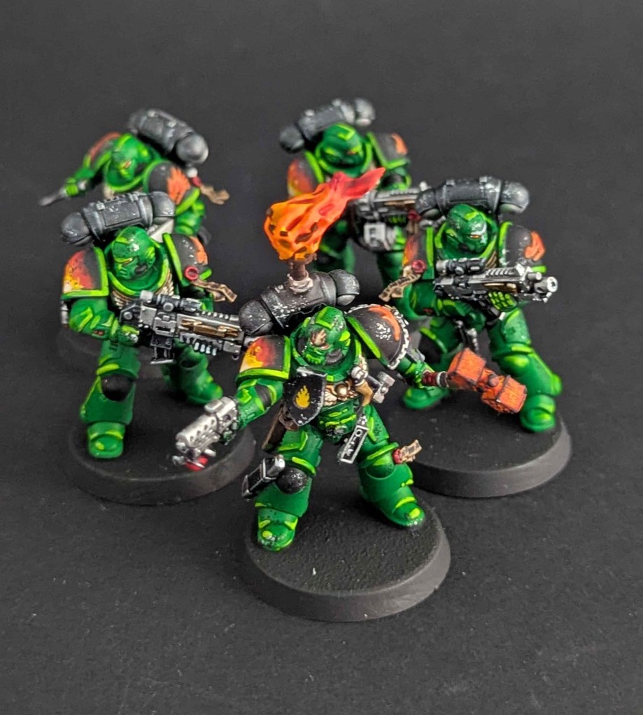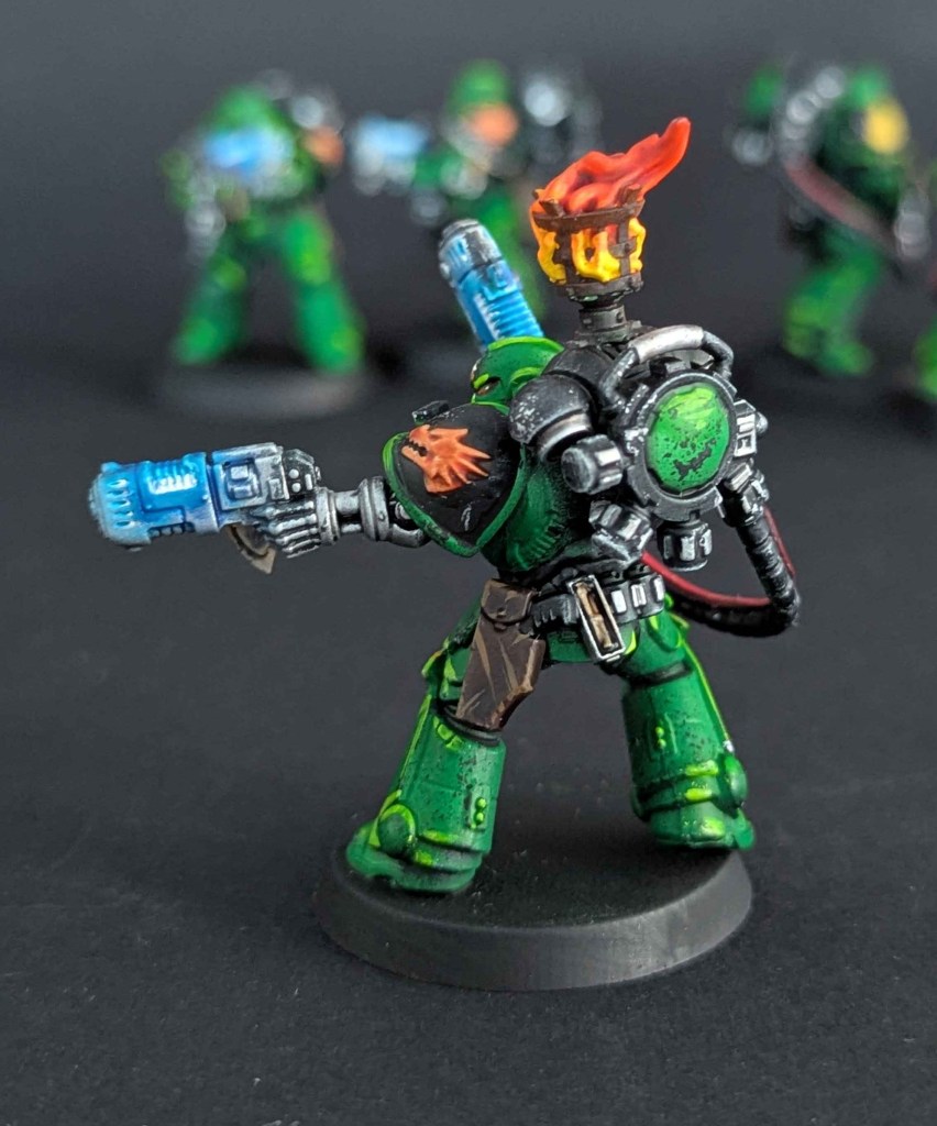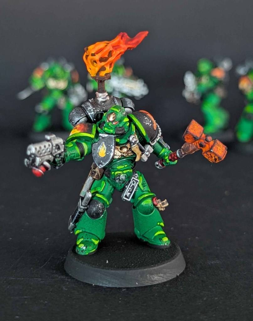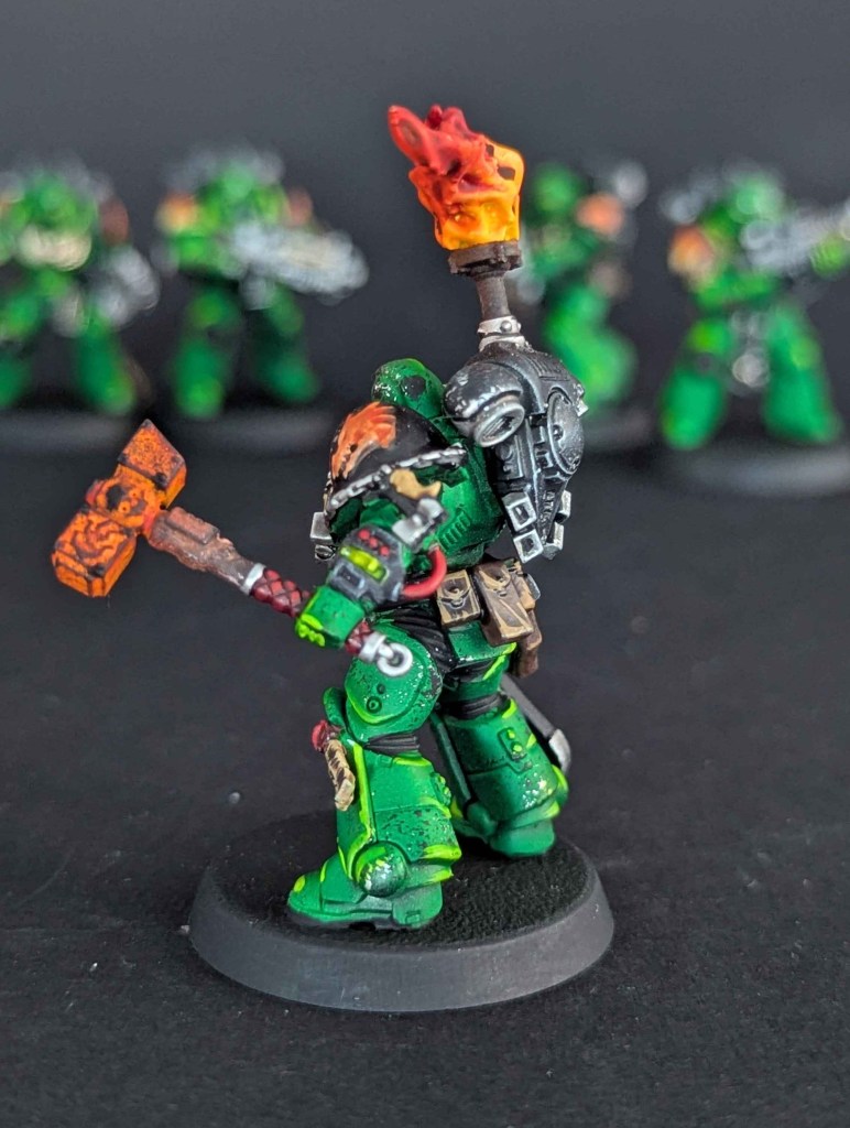 Voici la galerie de photos de la suite de la première commande de peinture pour des Space Marines du chapitre des Salamanders, incluant notamment le grand Vulkan He’stan.