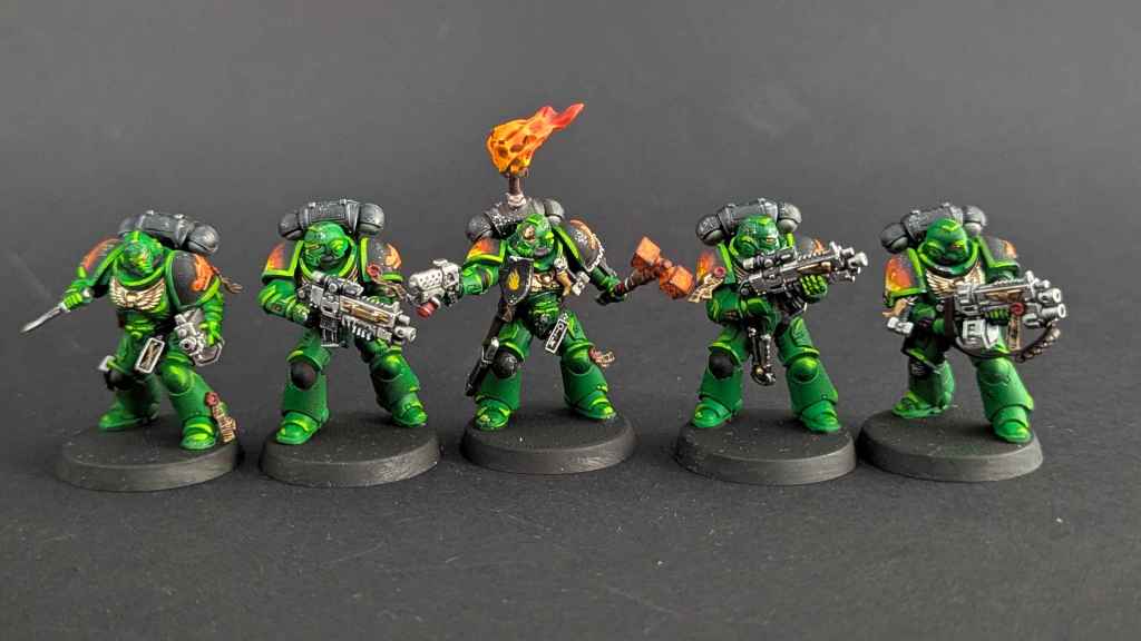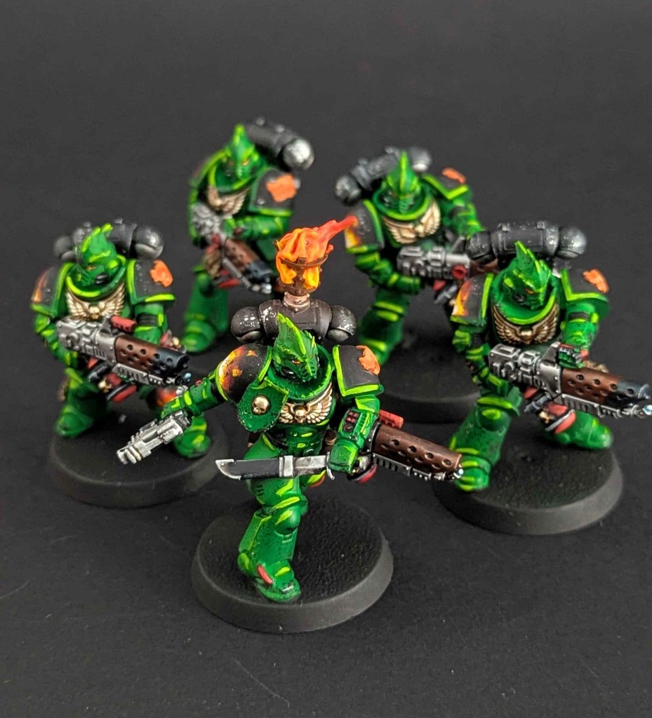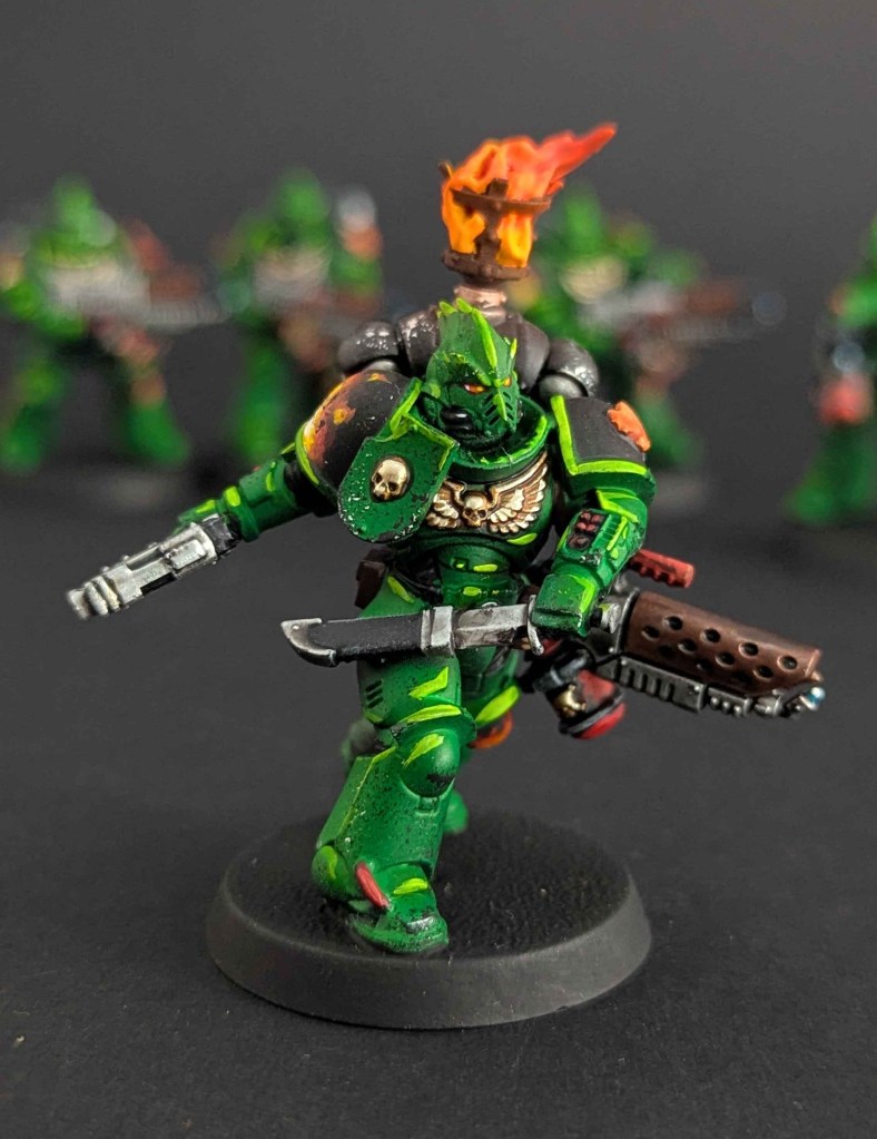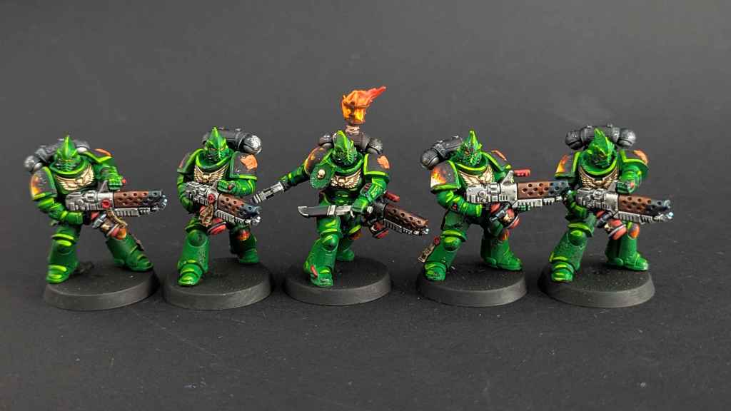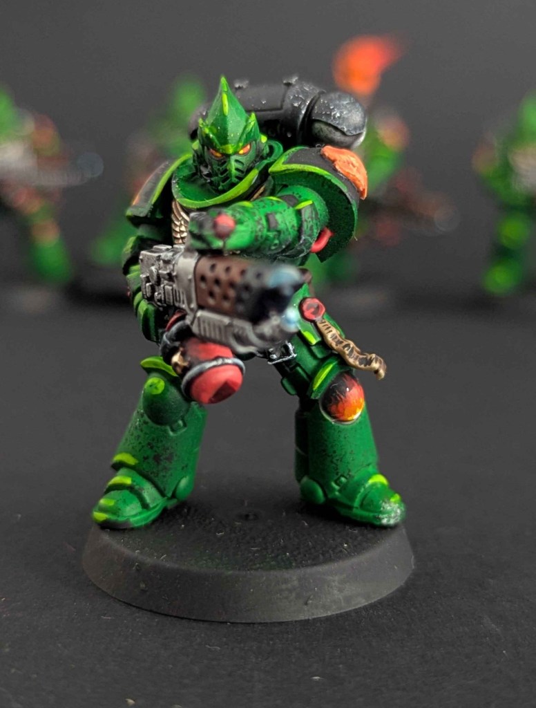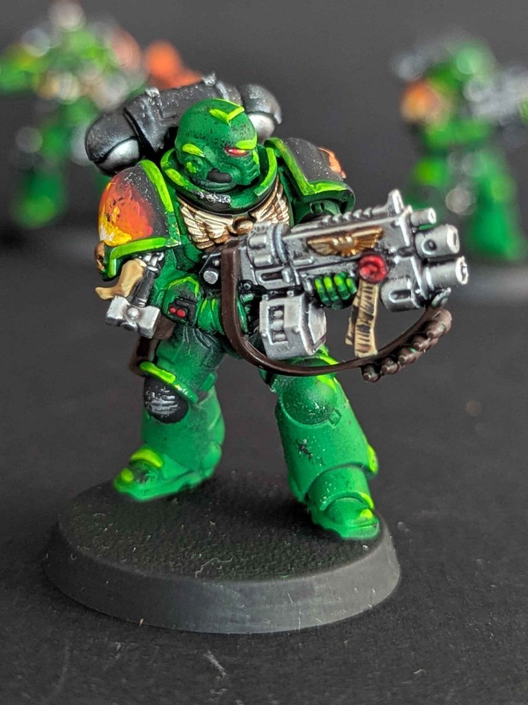 Voici la galerie de photos de la suite de la première commande de peinture pour des Space Marines du chapitre des Salamanders, incluant notamment le grand Vulkan He’stan.