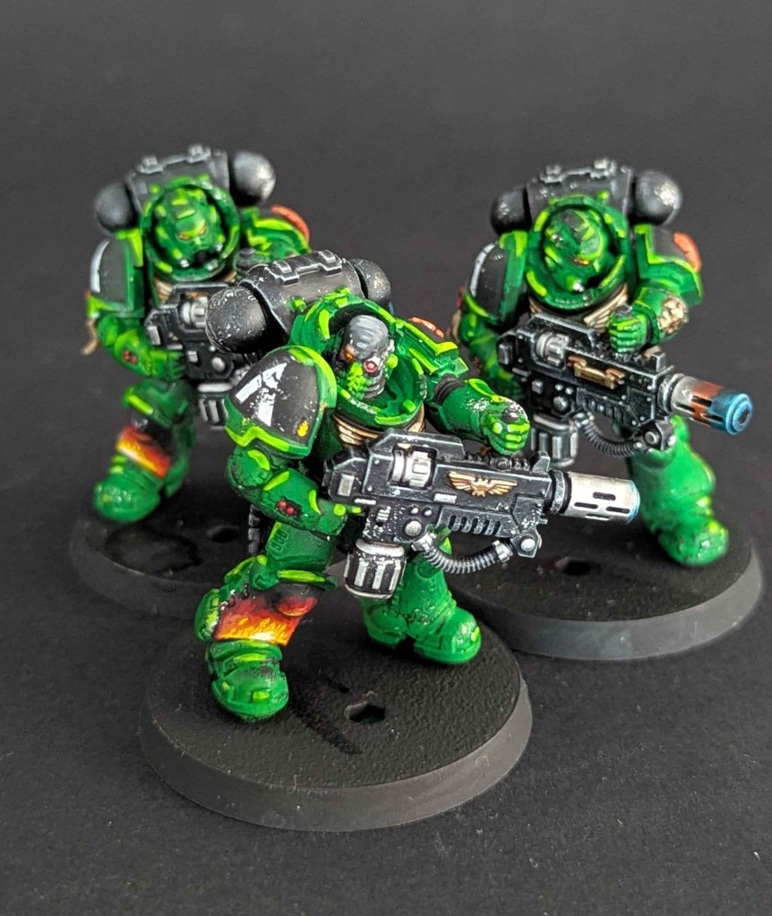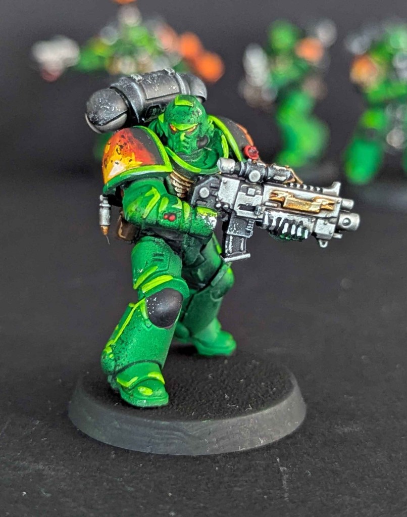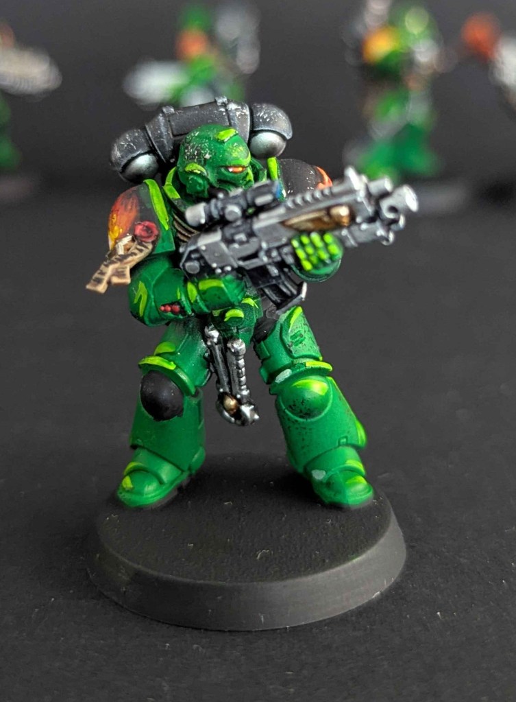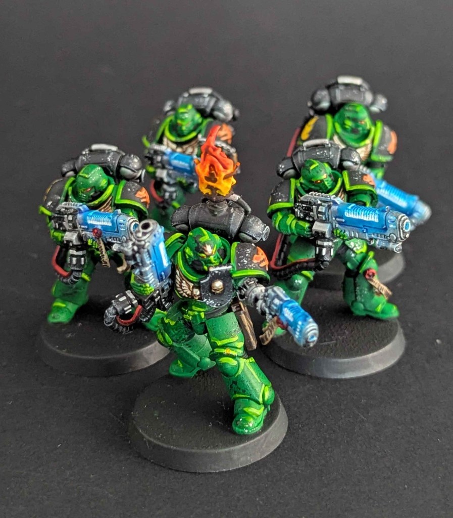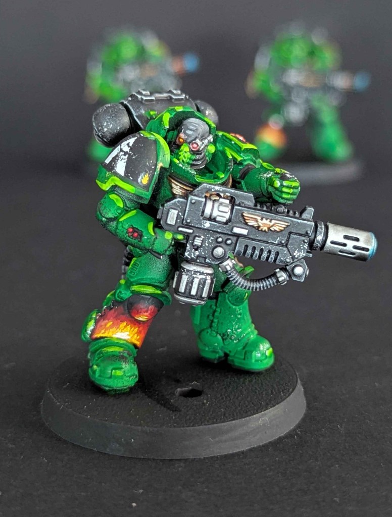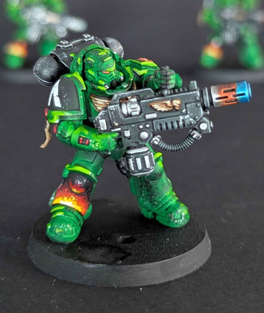 Voici la galerie de photos de la suite de la première commande de peinture pour des Space Marines du chapitre des Salamanders, incluant notamment le grand Vulkan He’stan.