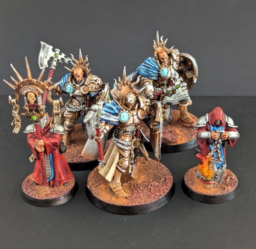 Suite à une Spearhead Stormcast et une première force d’armée, mon client a souhaité rajouter deux unités de Reclusians ainsi que Tornus l’Affranchi. En voici les photos 🙂