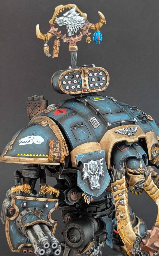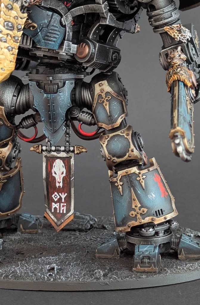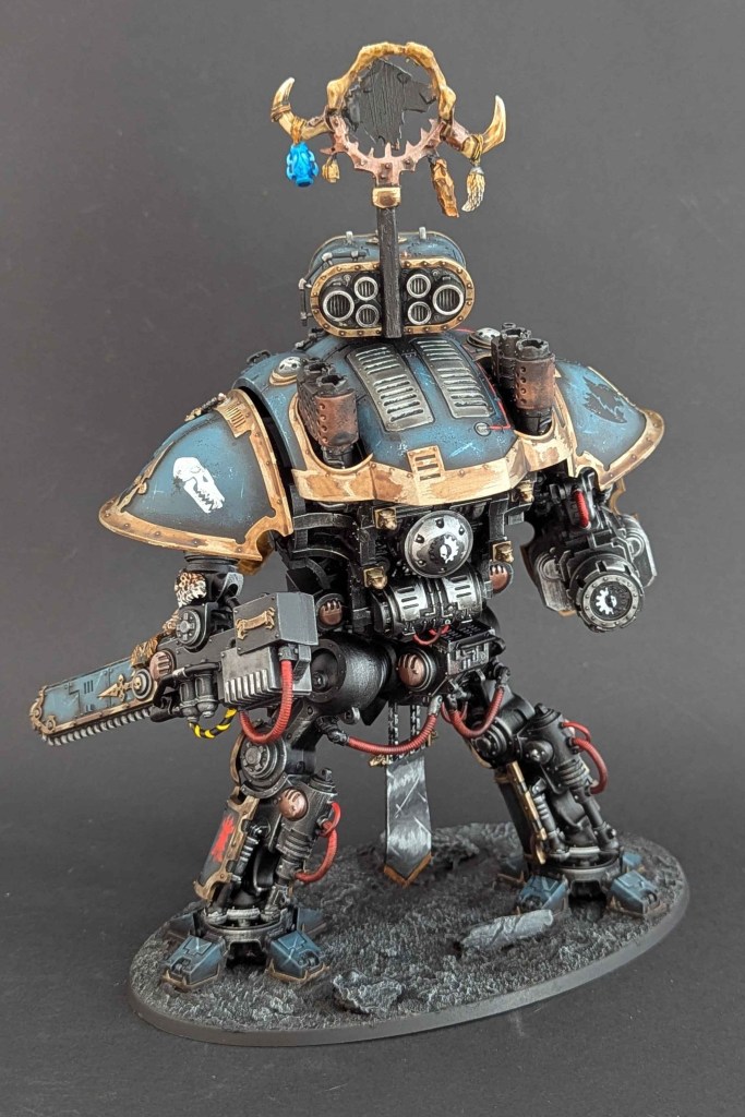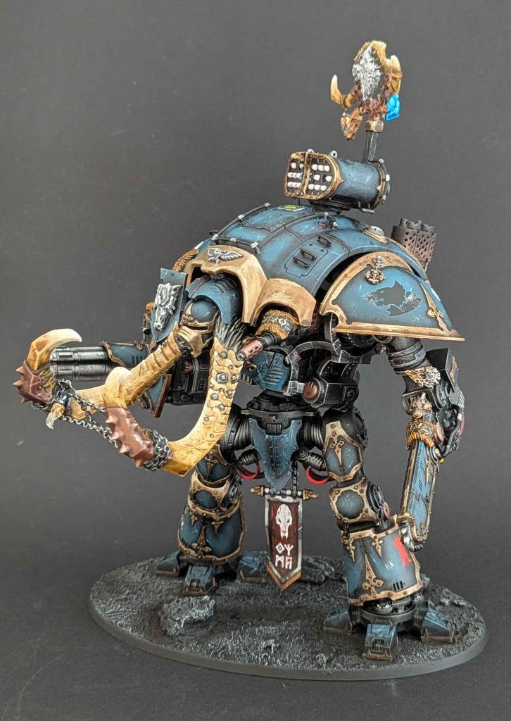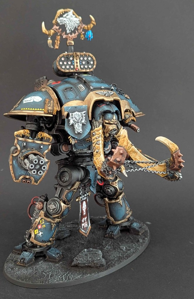 Je vous présente une autre commande d’un Imperial Knight aux couleurs du chapitre Space Marines Space Wolves (le premier dans ce thème peut être retrouvé ici !)