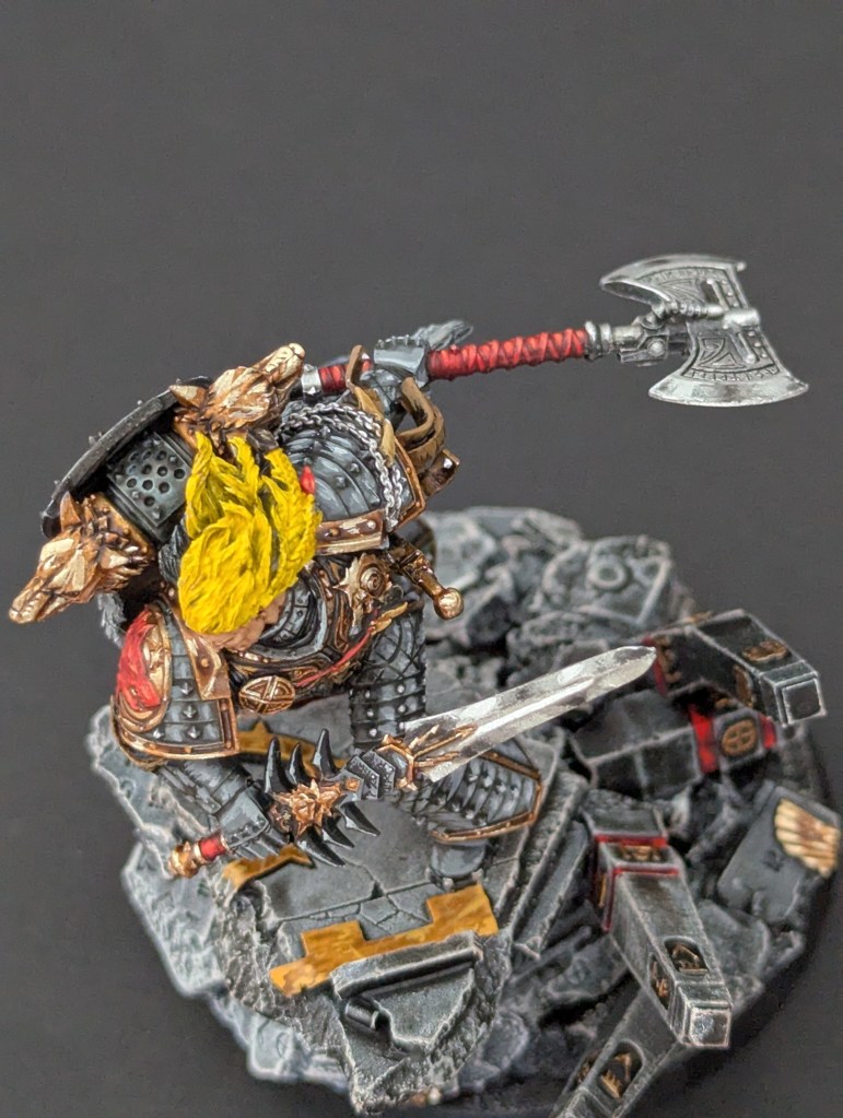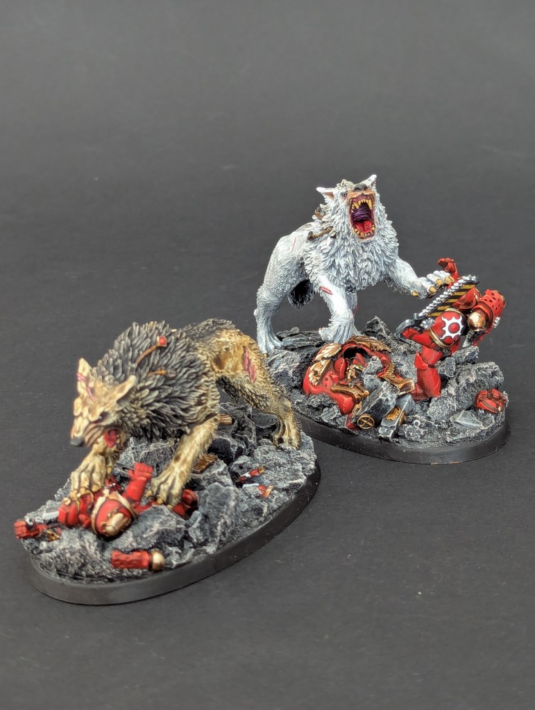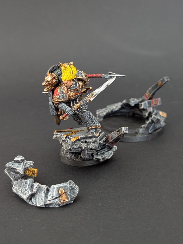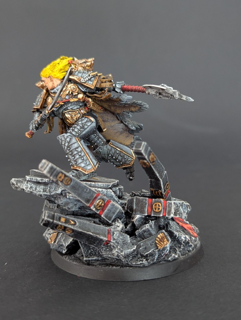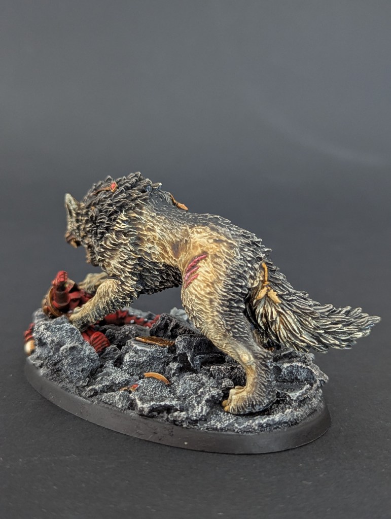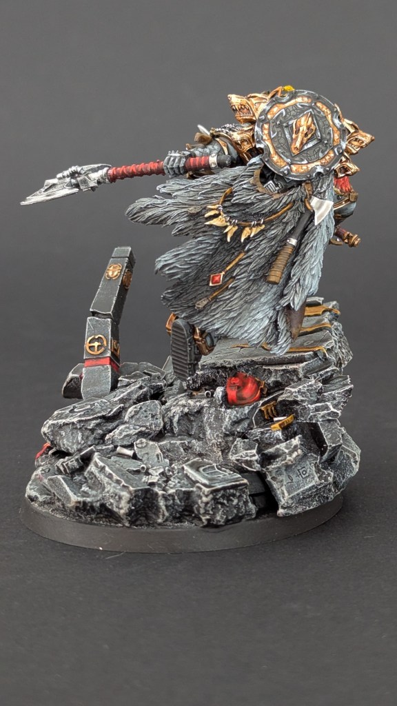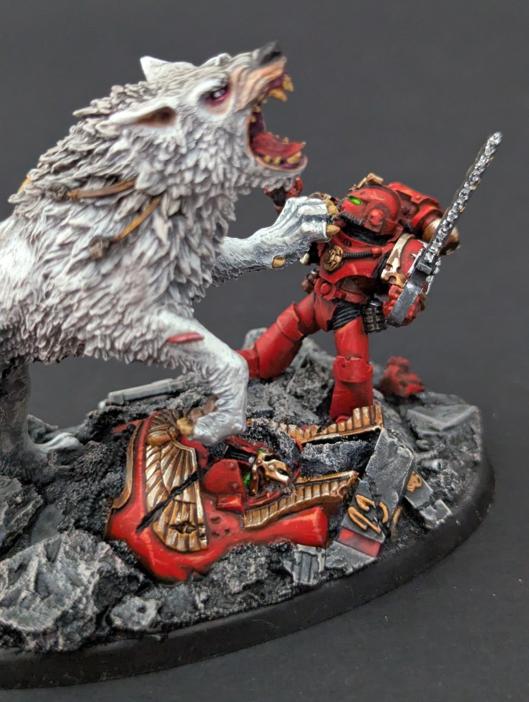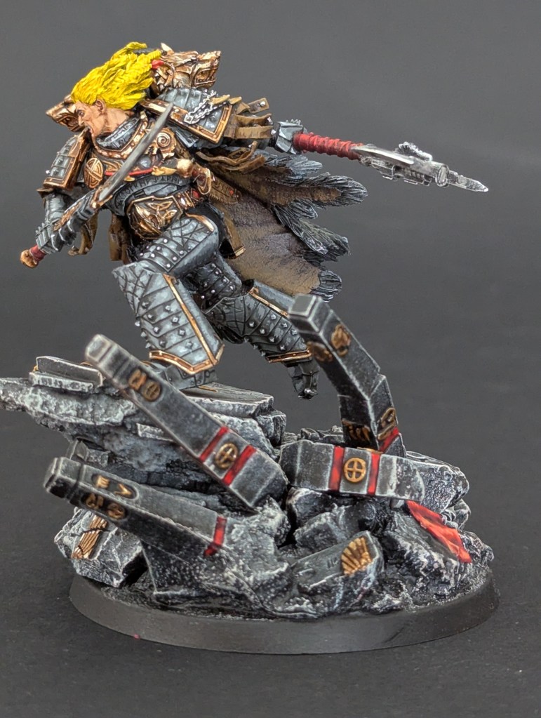 Voici Leman Russ, Primarque des Space Wolves ! En réalité, et pour le moment, il fait partie de l’univers de Warhammer 30000 mais peut-être reviendra-t-il plus tôt que prévu ? ^^ J’espère que cette peinture vous plaira !
