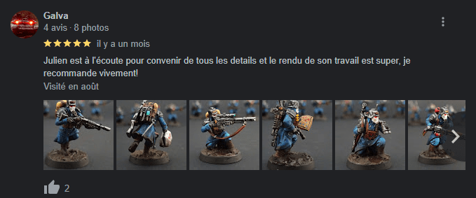 Vous pourrez trouver ici une liste de différents avis Google laissés par des clients.