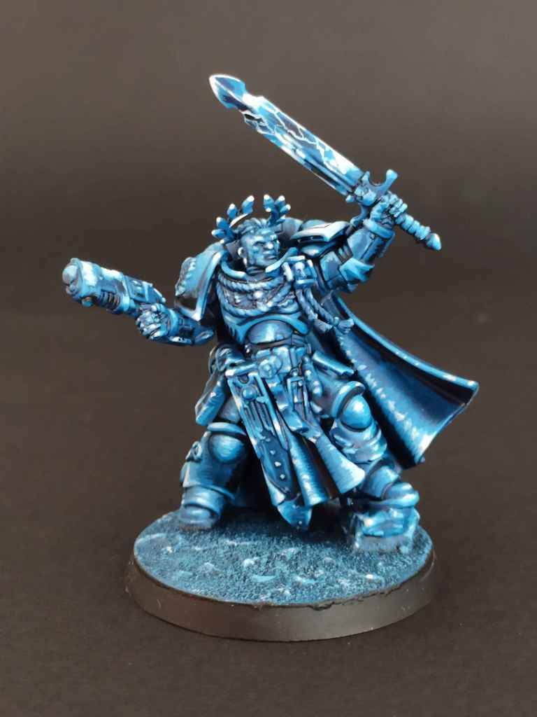 J’ai peint cette figurine de Lieutenant Space Marines en me mettant une contrainte particulière : n’utiliser que de la peinture bleu ^^ (avec du blanc et du noir aussi pour assombrir ou éclaircir bien sûr ^^)