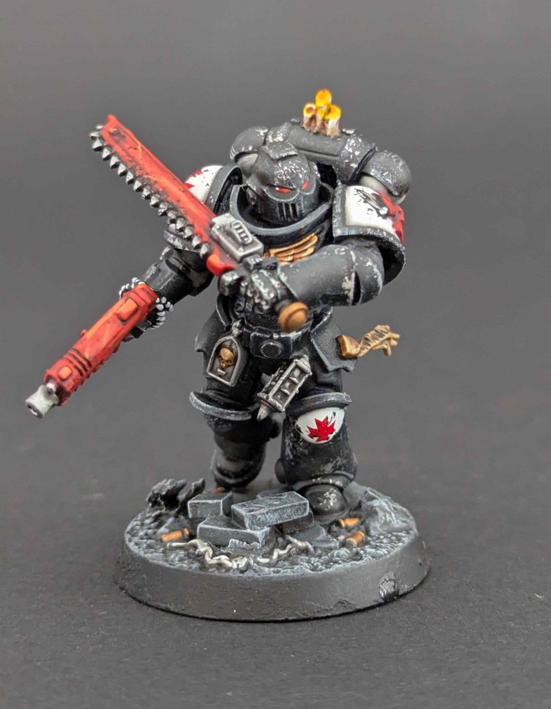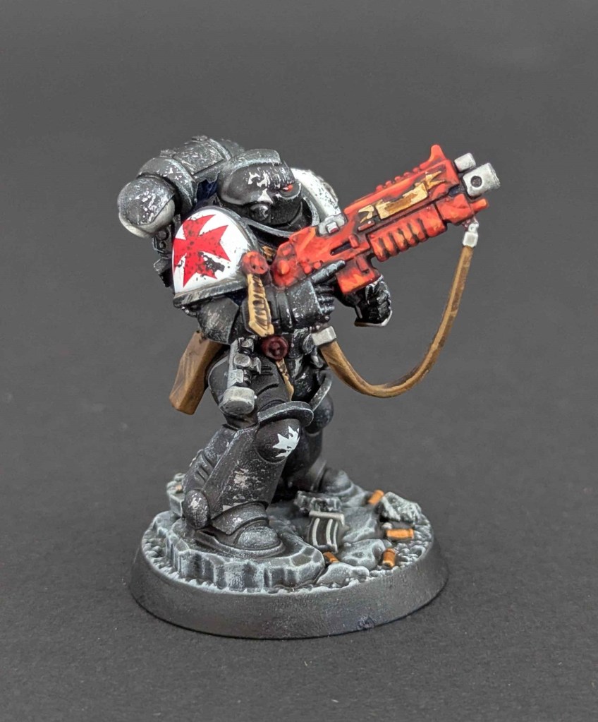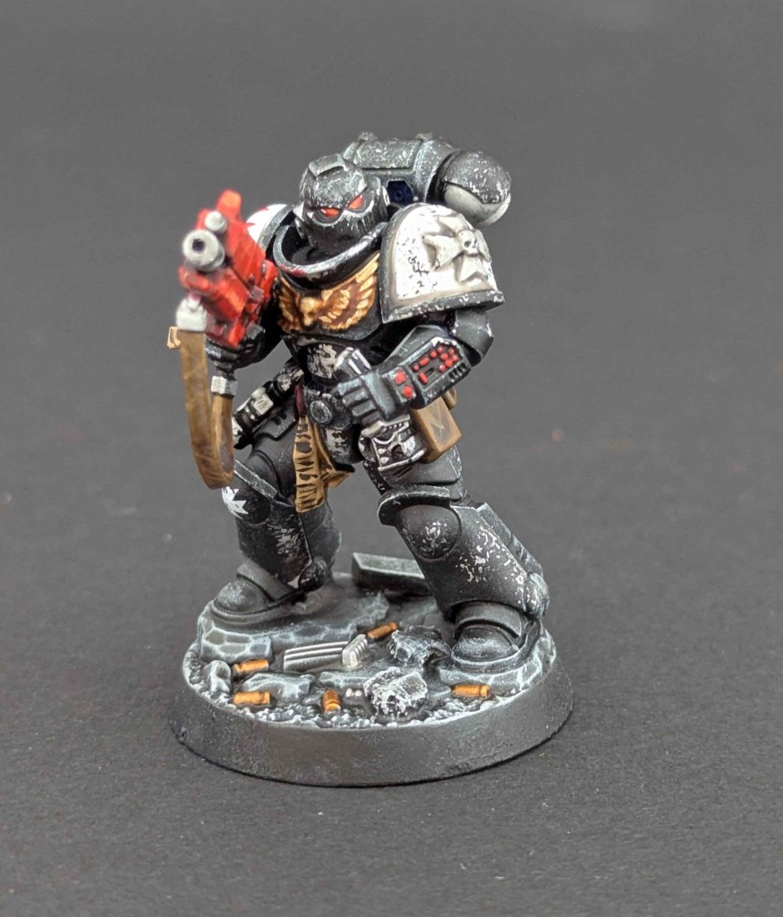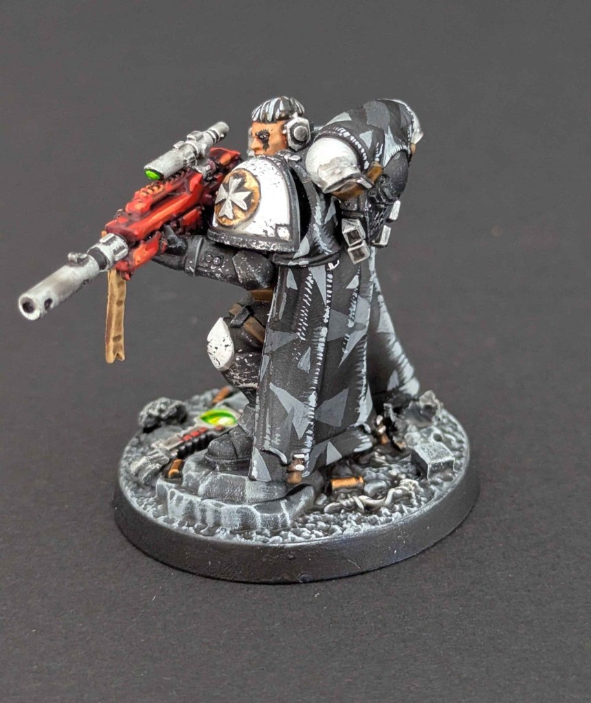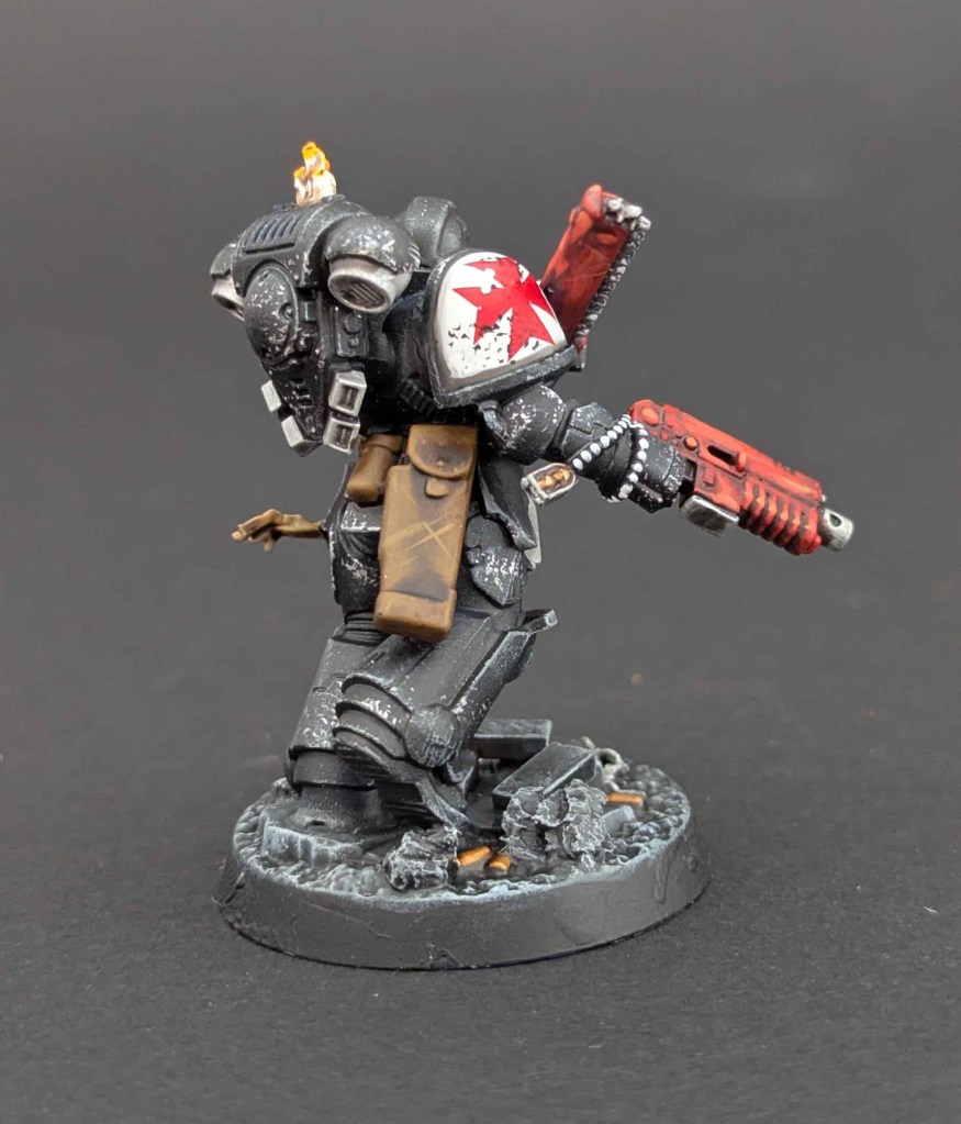 Voici une Kill Team de Space Marines du chapitre des Black Templar. Un projet très stimulant à faire car il y avait de la conversion à faire. Et j’adore ça ^^ Sur une base de Space Marines générique de la Kill Team, j’ai customisé sur la demande du client en Black Templar en utilisant le Kit d’Amélioration Black Templar de chez Games Workshop.