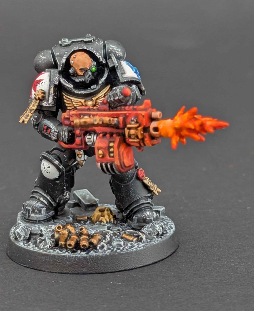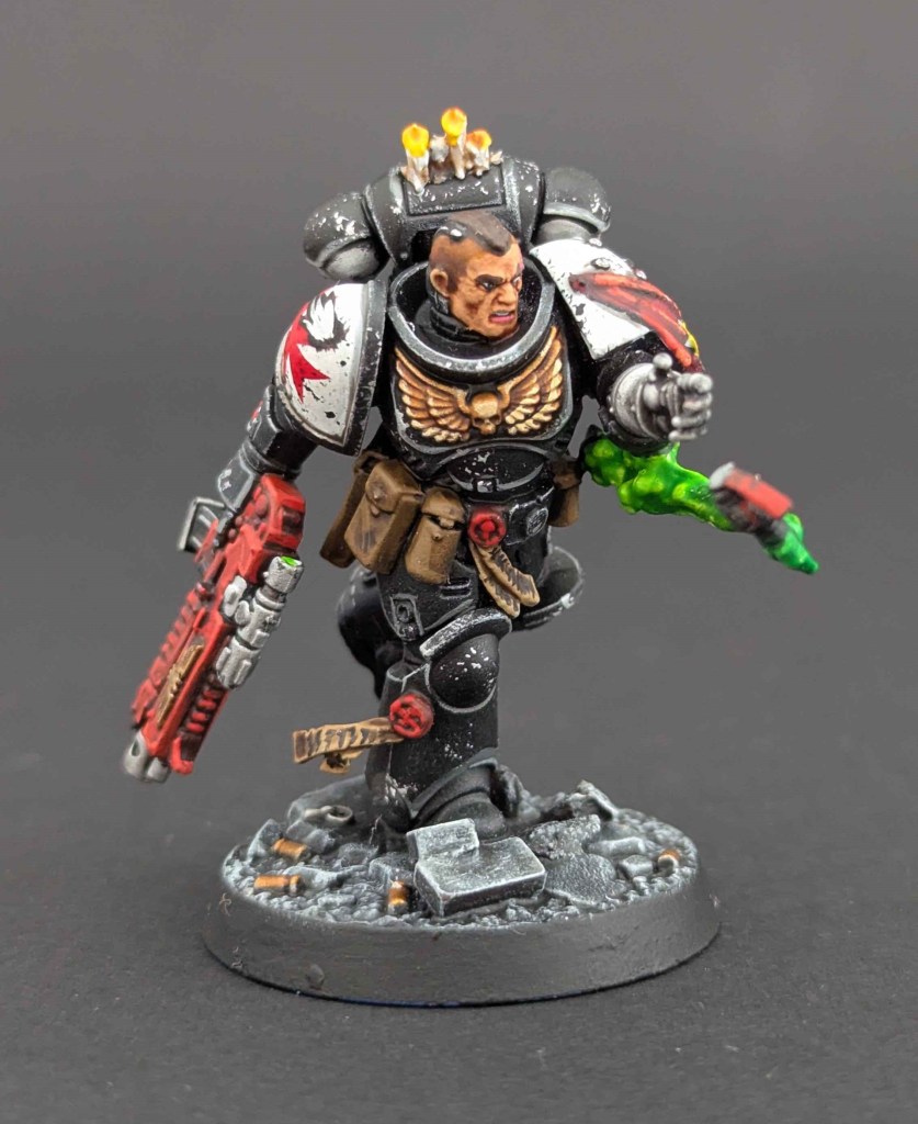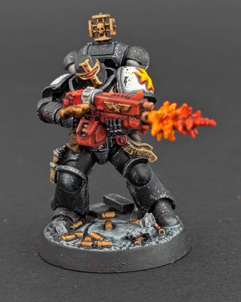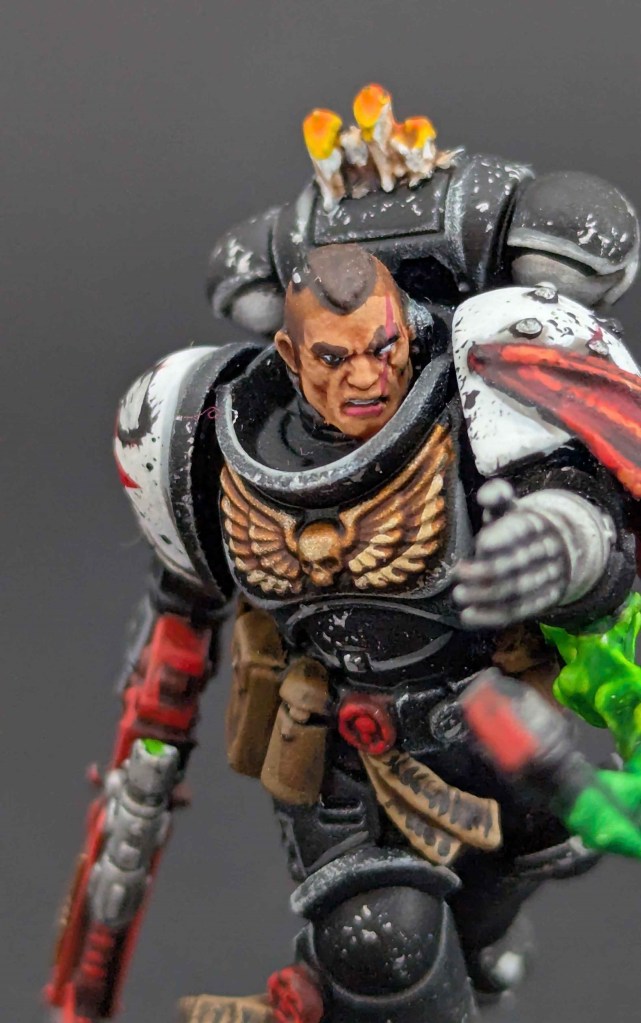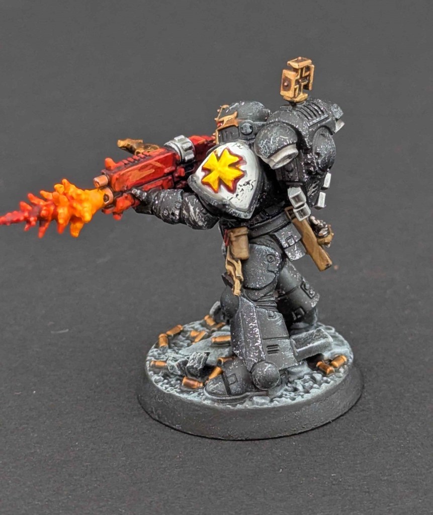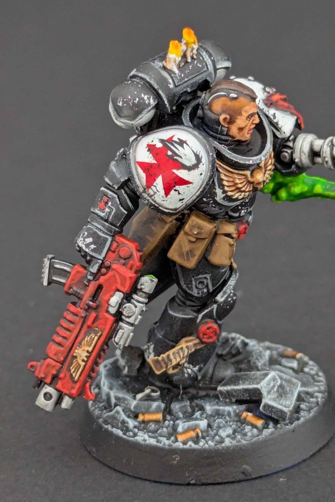 Voici une Kill Team de Space Marines du chapitre des Black Templar. Un projet très stimulant à faire car il y avait de la conversion à faire. Et j’adore ça ^^ Sur une base de Space Marines générique de la Kill Team, j’ai customisé sur la demande du client en Black Templar en utilisant le Kit d’Amélioration Black Templar de chez Games Workshop.